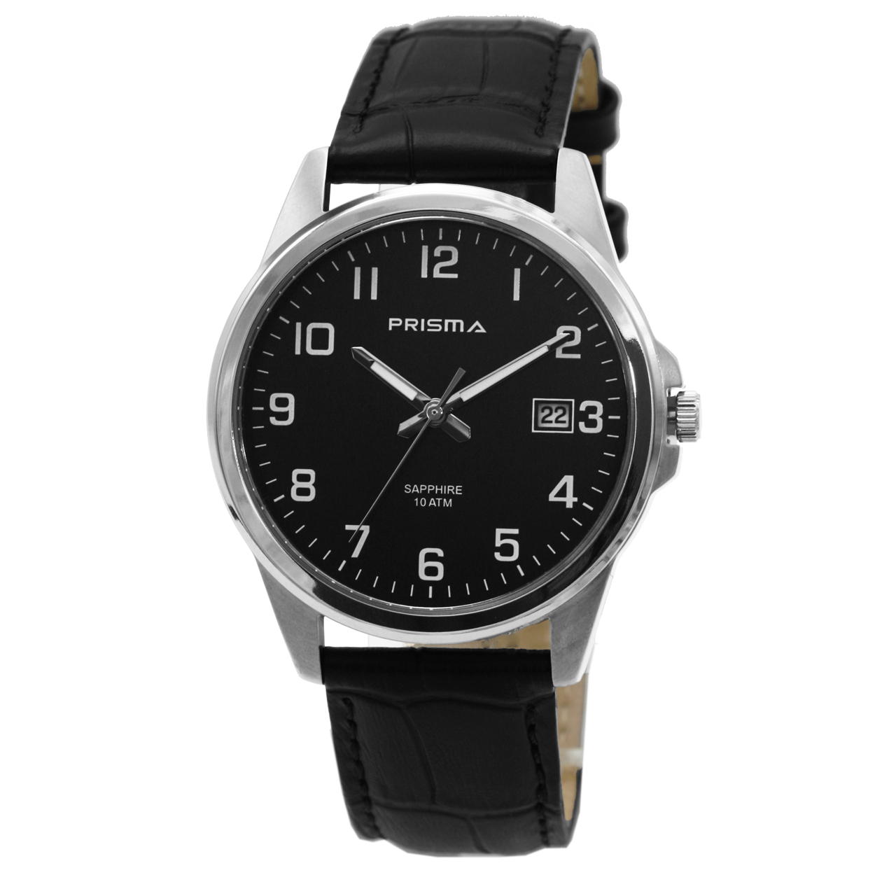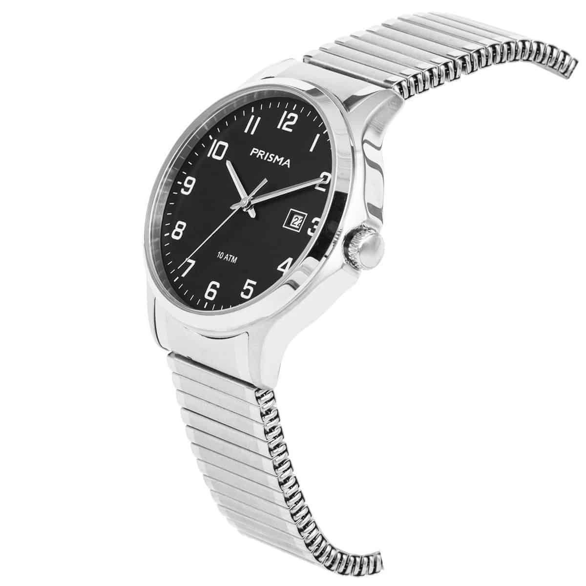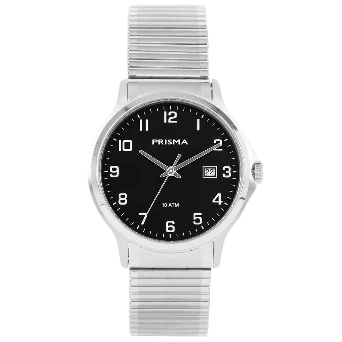 Prisma Horloge P.1742 Heren Edelstaal Datum zwart Saffiergla