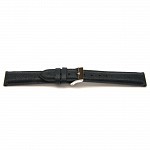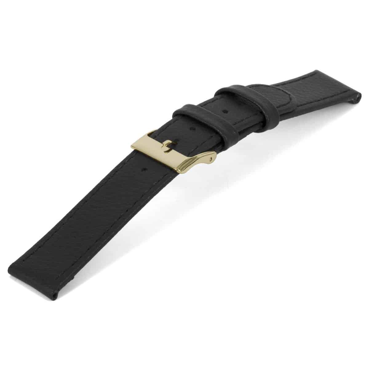 Zwart lederen horlogeband met goudkleurig edelstaal gesp.