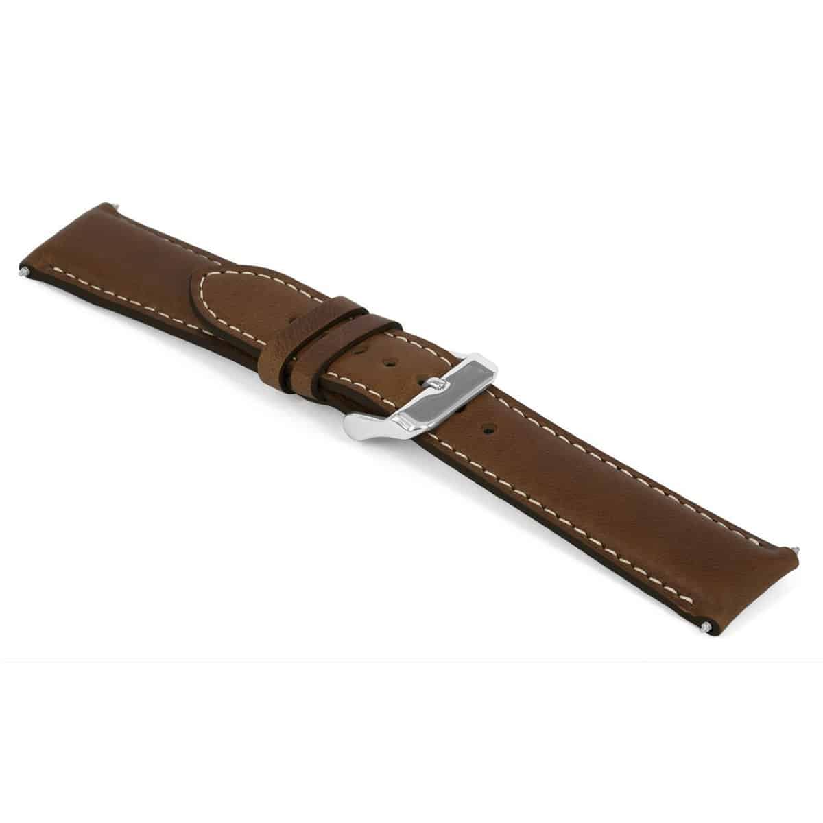 Lederen horlogeband, oily bruin en gestikt.