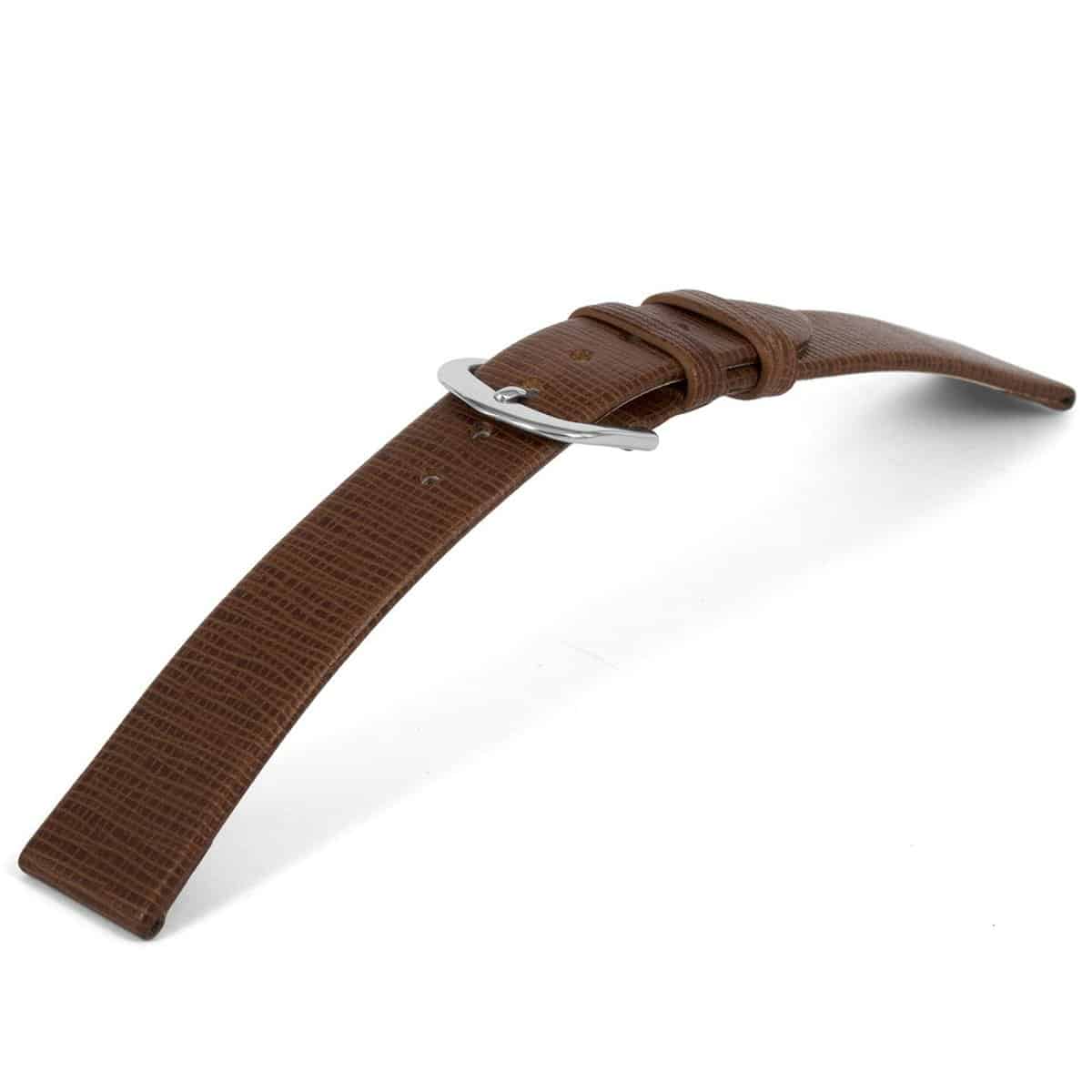 Hoogwaardig Italiaans leder en plantaardige gelooide horlogeband bruin, bewerkt en ongestikt.