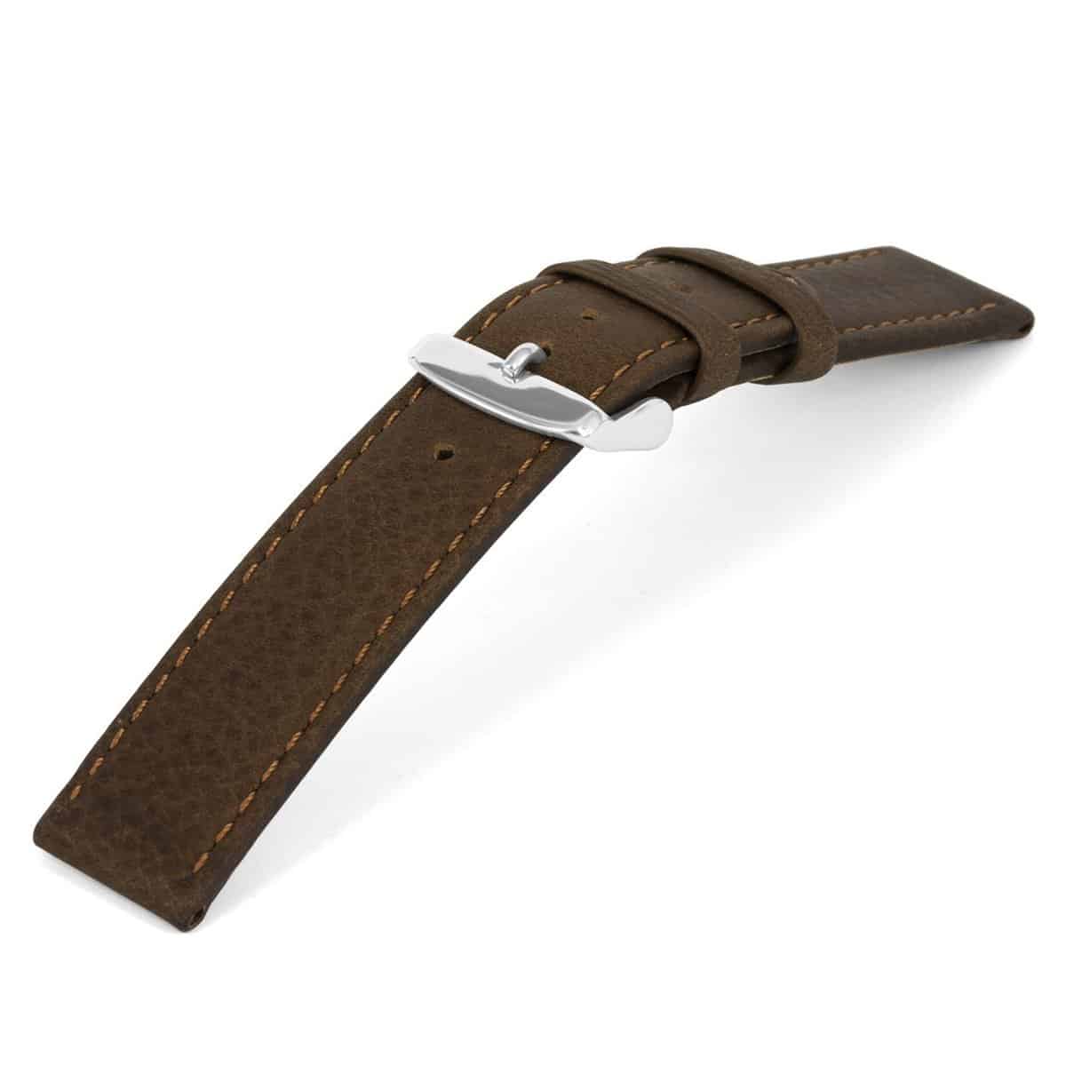 Italiaans oily cowhide lederen horlogeband, oily bruin en gestikt.