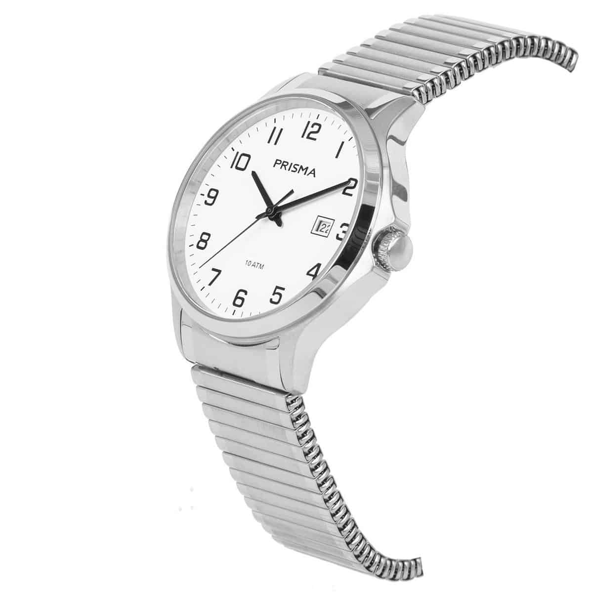 Prisma heren P1701 rekband horloge van all stainless steel.