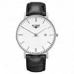 – Horlogeband: Zwart leder met gespsluiting